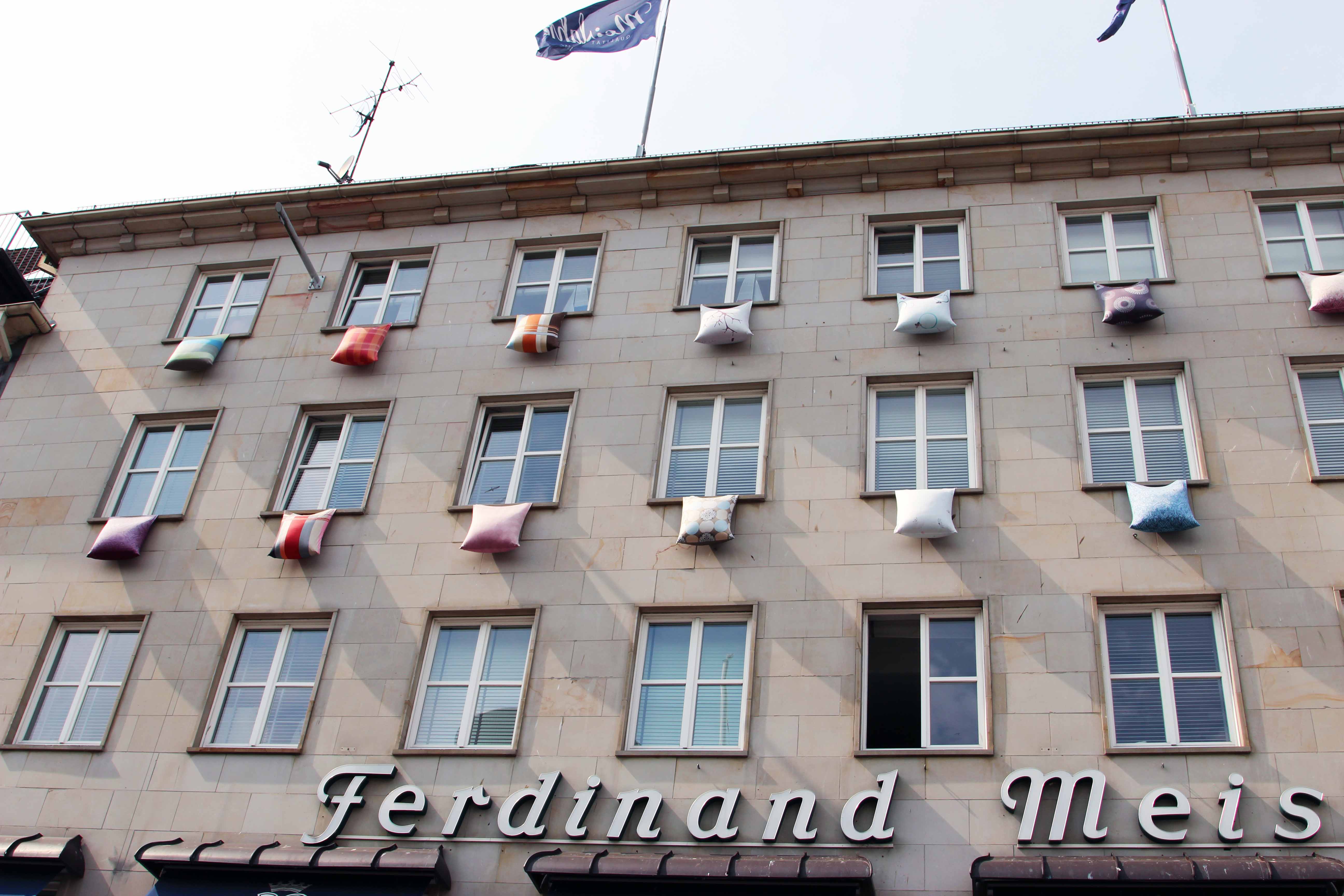 ‘Window shopping’ – alternative cushion display – at a Kiel home textiles shop.