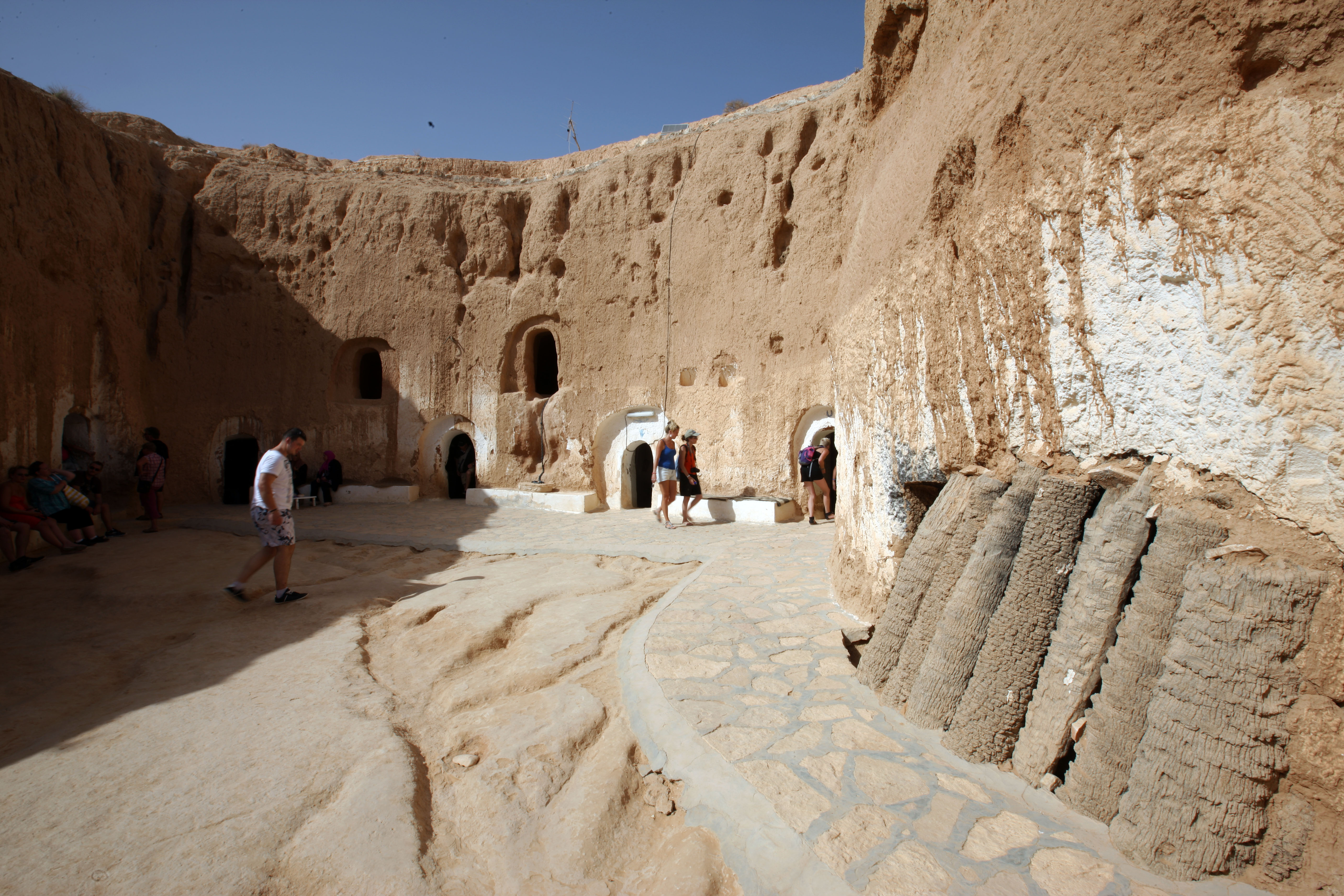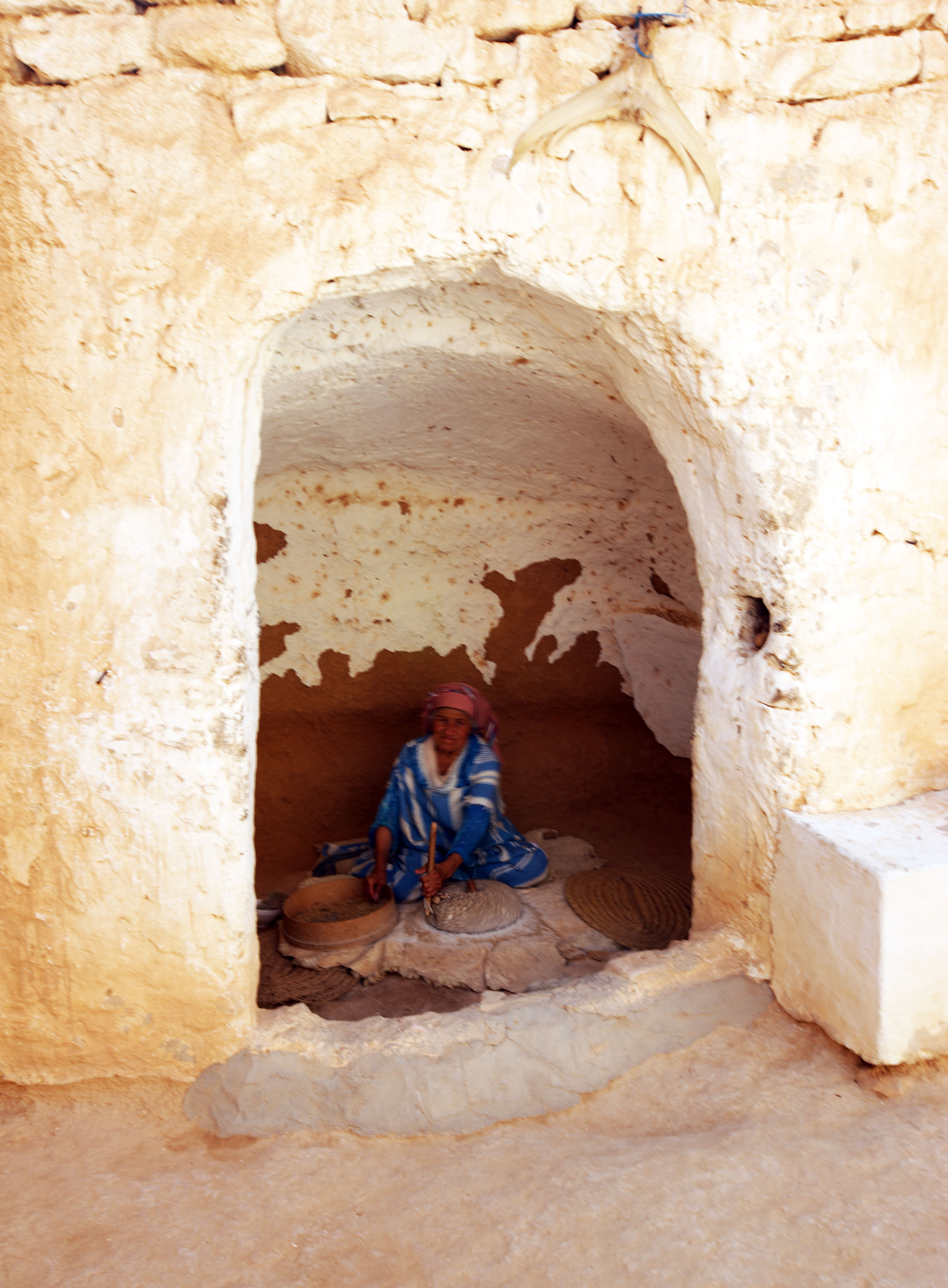 The trip went past the mountainous ‘moon landscape’ around Matmata, an area with 700 artificial caves of which a few still are inhabited by Berber residents. We visited a Berber family in their large cave and were offered sweet tea. A dinar or two was expected; a small price for a visit to a very different villa.