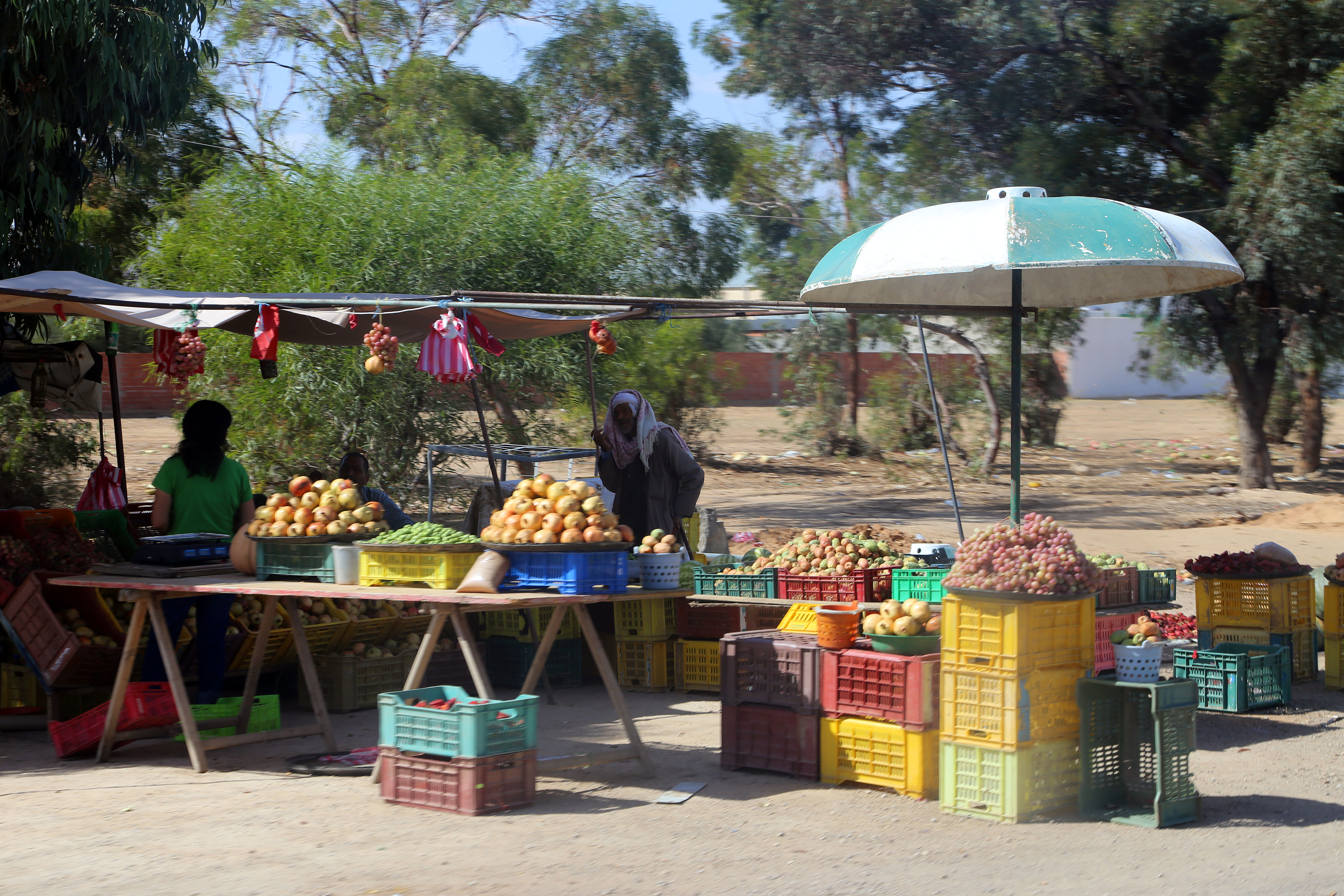 From here we drove Down the A1, the main route from North to South towards Libya. Along this road cheap petroleum from Libya is sold. Everywhere you see barrels and bottles with illegal petroleum at bargain prices, so cheap (and popular), that this trading is hard to stop.