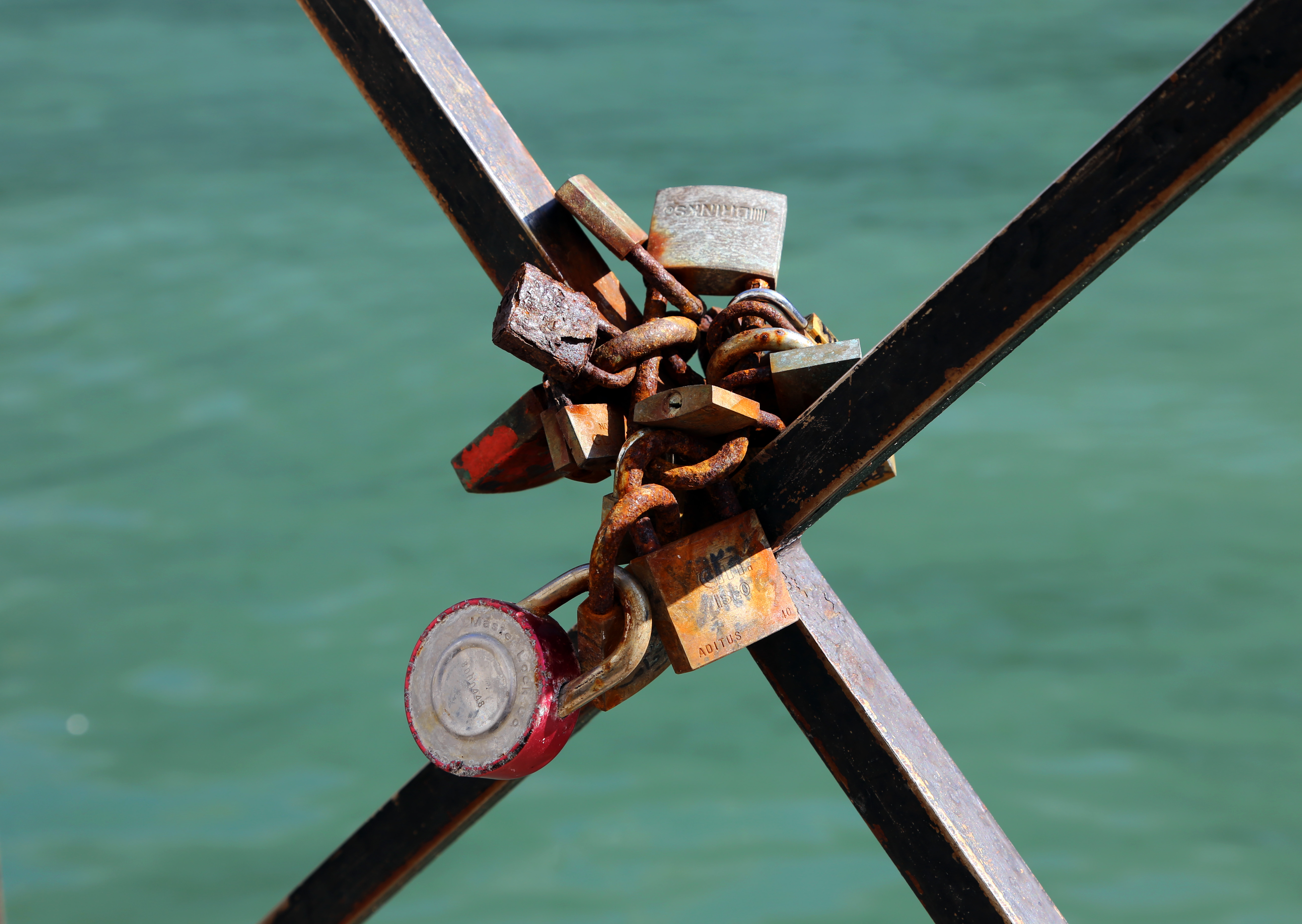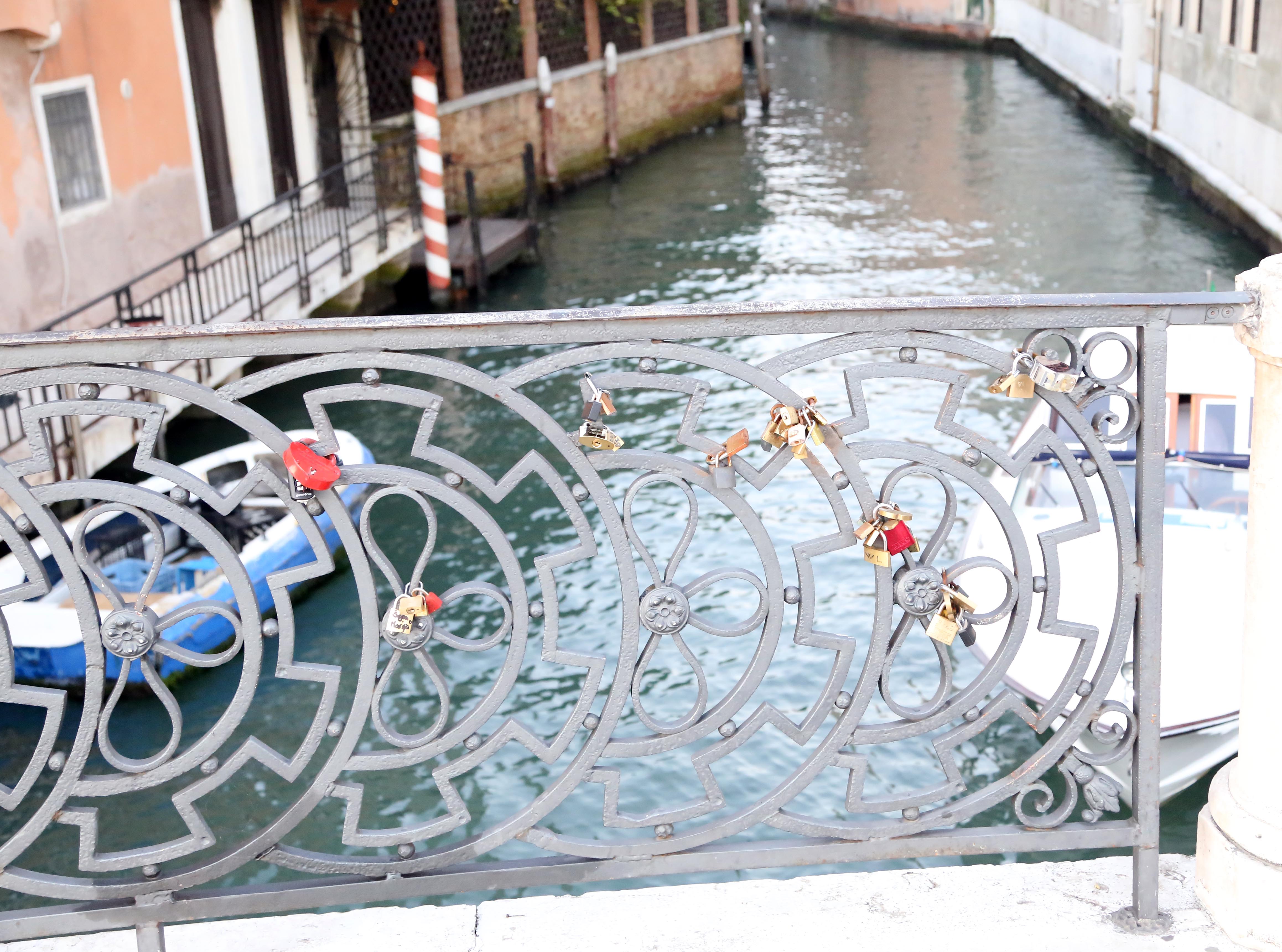 No matter what time of year, my favourite time is in the morning, where most other tourists have not gotten up yet. Then you can relax at a café and watch the city wake up or go for a stroll and see a lot of details, which are impossible to spot otherwise (e.g. the bug bitten pillar or the love locks below) … or maybe you can be the first in line to see the Basilica di San Marco, where you normally queue for hours.