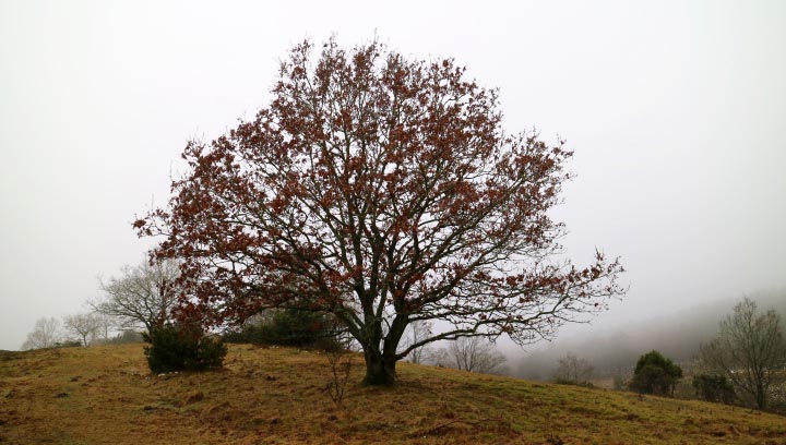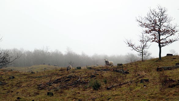 Three large bronze age burial mounds have given name to this area with 22 burial mounds. From the top of Trehøje you can see far away in all directions. Not today, though.