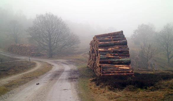Large stacks of newly cut wood. Photos tell many stories, but live experiences are better (more sensory input): The smell of wood today is very pleasant and quite powerful.