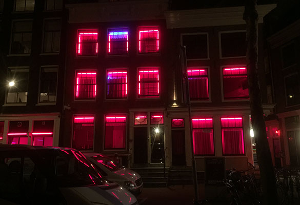 I get a bit of night sightseeing as I find my way through a ‘red light district’ with many small cafés and ‘coffee’ shops …