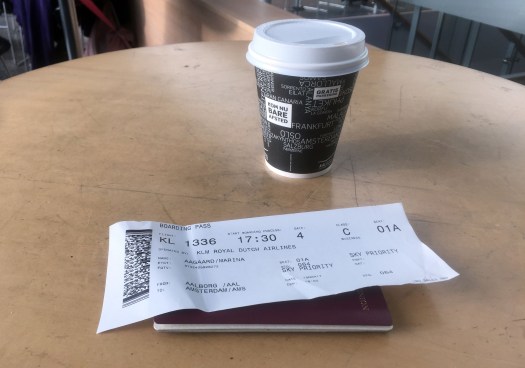Wednesday afternoon. Aalborg Airport in northern Denmark. First a cup of coffee.