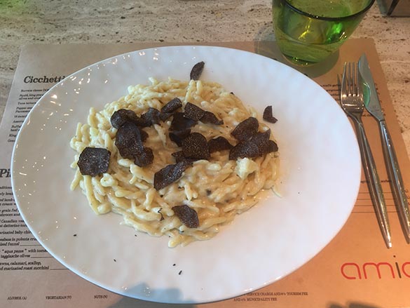 Time for a light lunch at Amici Restaurant. The menu boasted a special dish with pasta with cauliflower and truffle … and then tiramisu in glass. Yes, please.