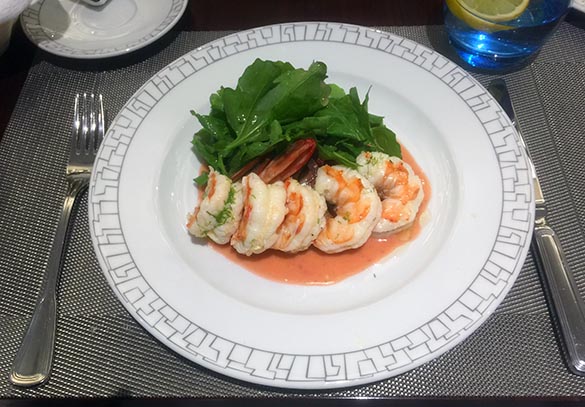 Shrimp cocktail, chicken and panacotta. As for the entree, we expect the usual:
