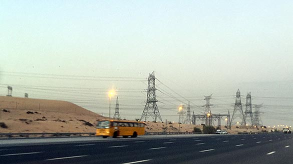 Early morning, it is still quite cool. We, our friend, Henrik and I, drive by car from the city of Dubai out into the desert and head south-east. Far from a spectacular desert landscape as in the tourist brochures; here it is gray-brown, dirty sand with bushes and shrubs and a forrest of power pylons and power lines. Not exactly idyllic.