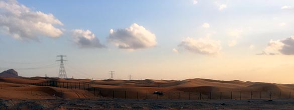 When we get a little closer to Dubai we see a convoy of large, white Toyota Landcruisers on their way to a desert jeep safari. It looks impressive. But …
