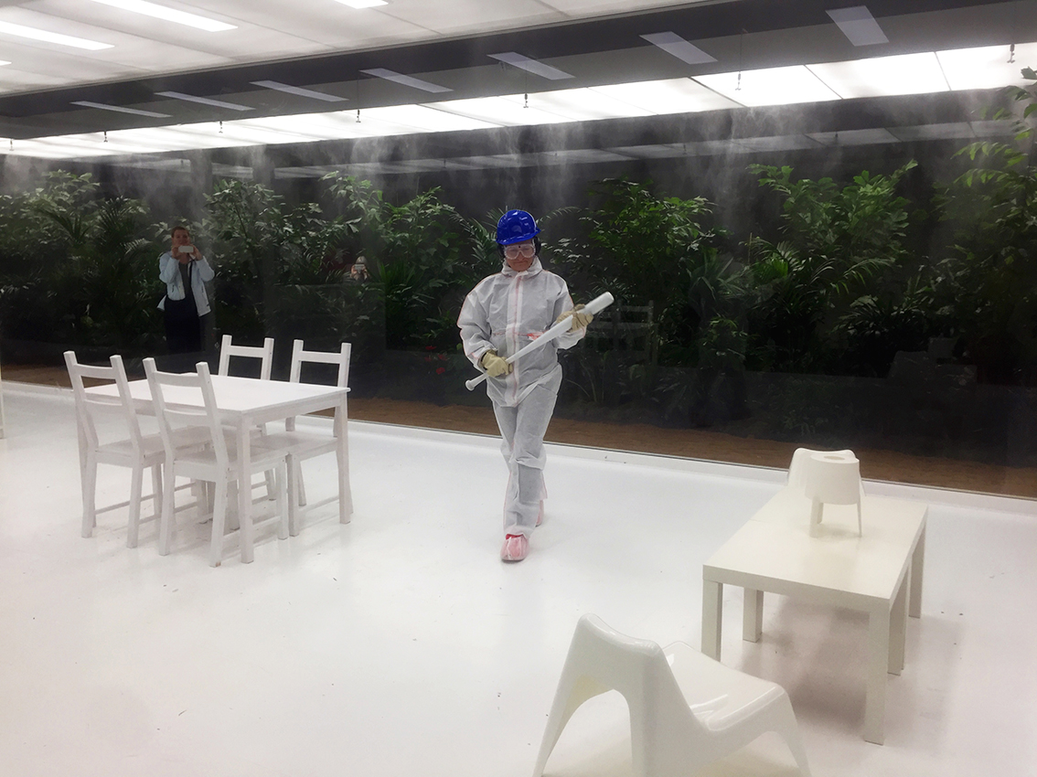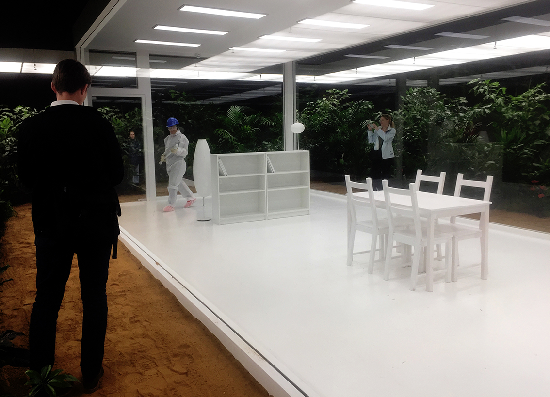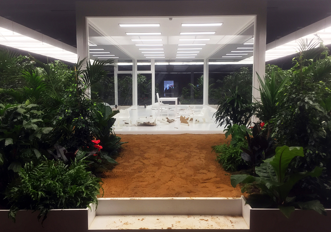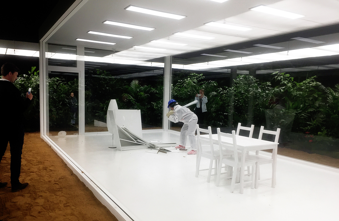 The Garden. A living piece of art. A misty, humid garden around a clinical white domestic chamber; an anger room?