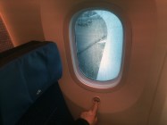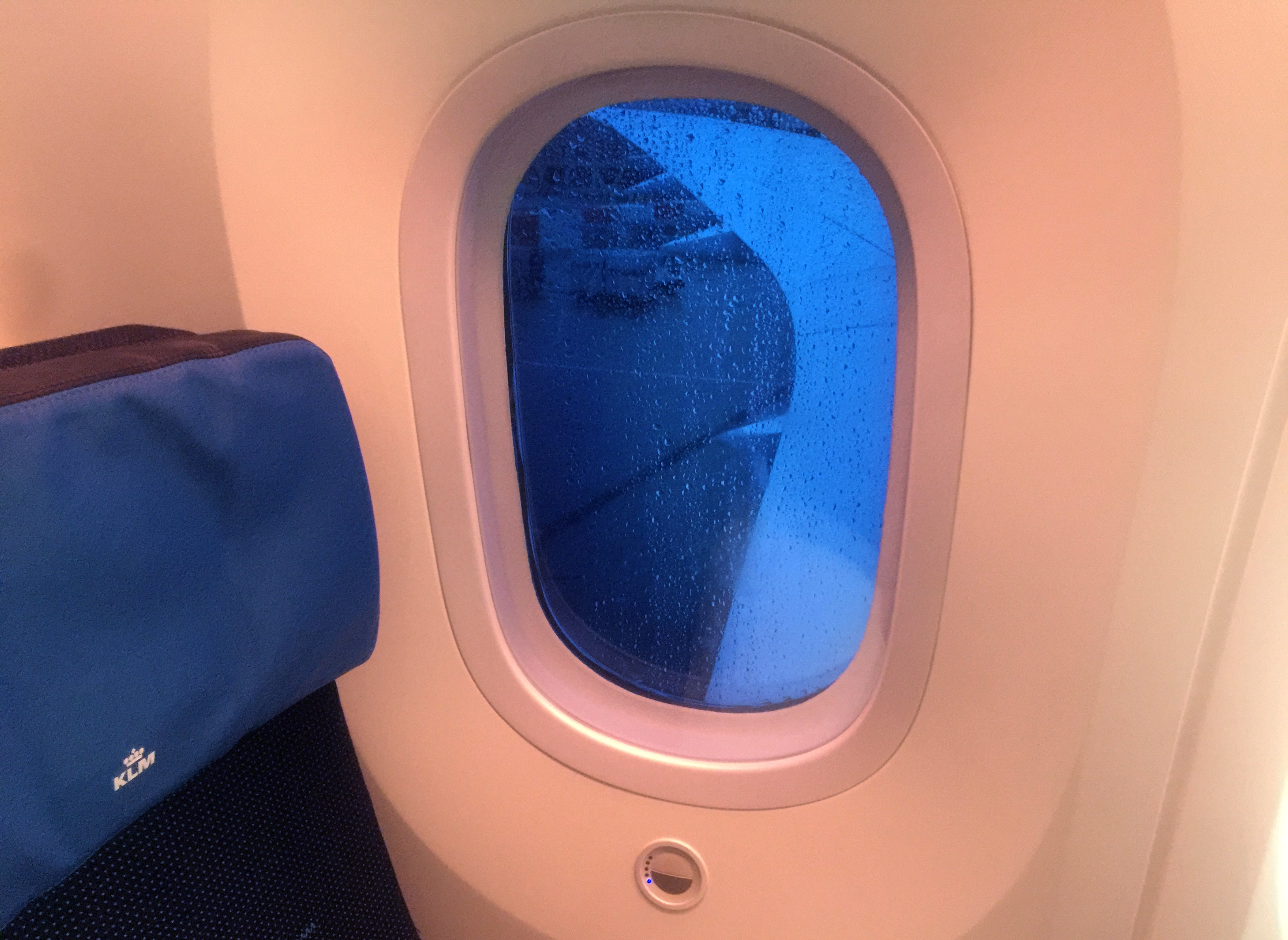 But. There is not that much room on board a plane, so photography is not easy. Before take-off, we take a few pictures, but unfortunately for us, luckily for KLM, the plane is full, so it’s difficult to get some clear shots: For the sake of the other passengers, there are obviously restrictions on photography – I would not like to be photographed myself either, unless it was strictly necessary … for example now.