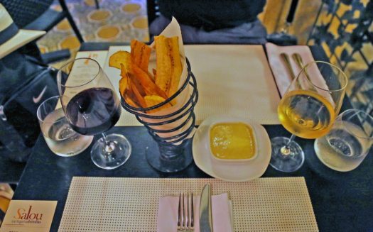 First we are served a special Cartagena appetizer; green banana chips with dip. Tasty.