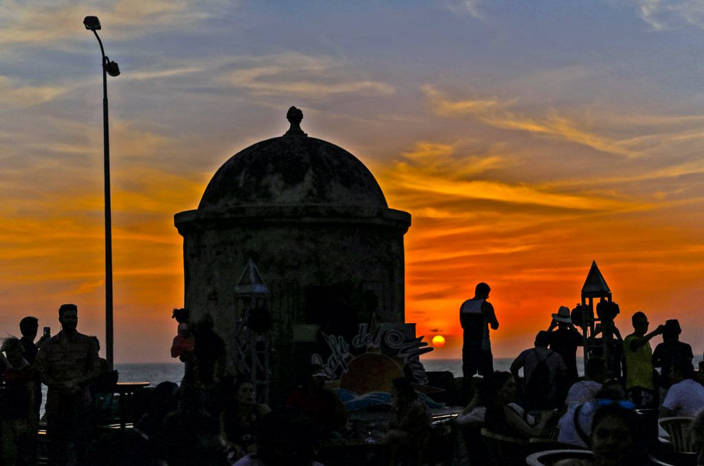 The DJ moves in and out of the small tower featured on thousands of Cartagena photos.