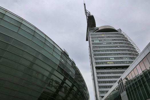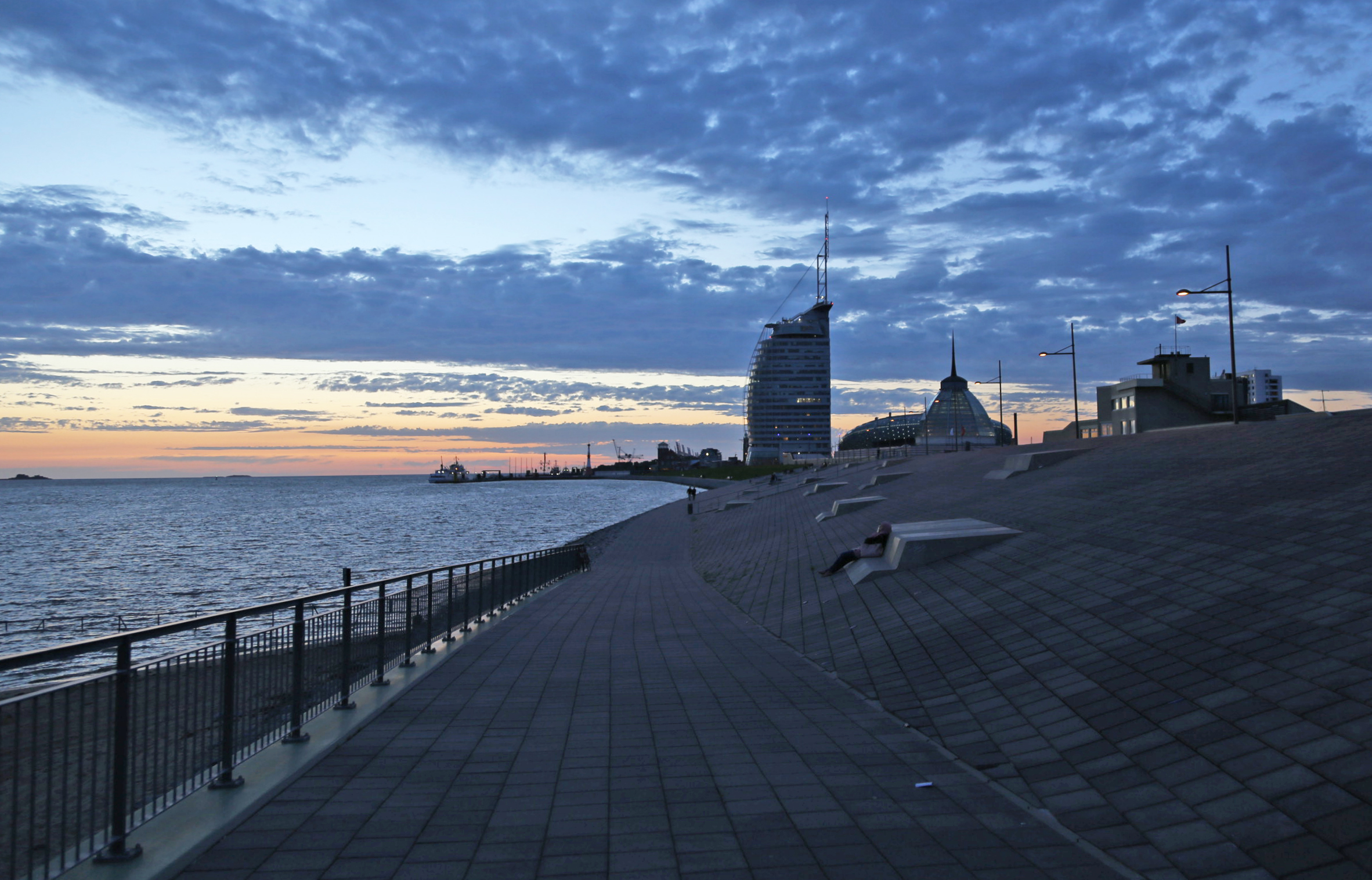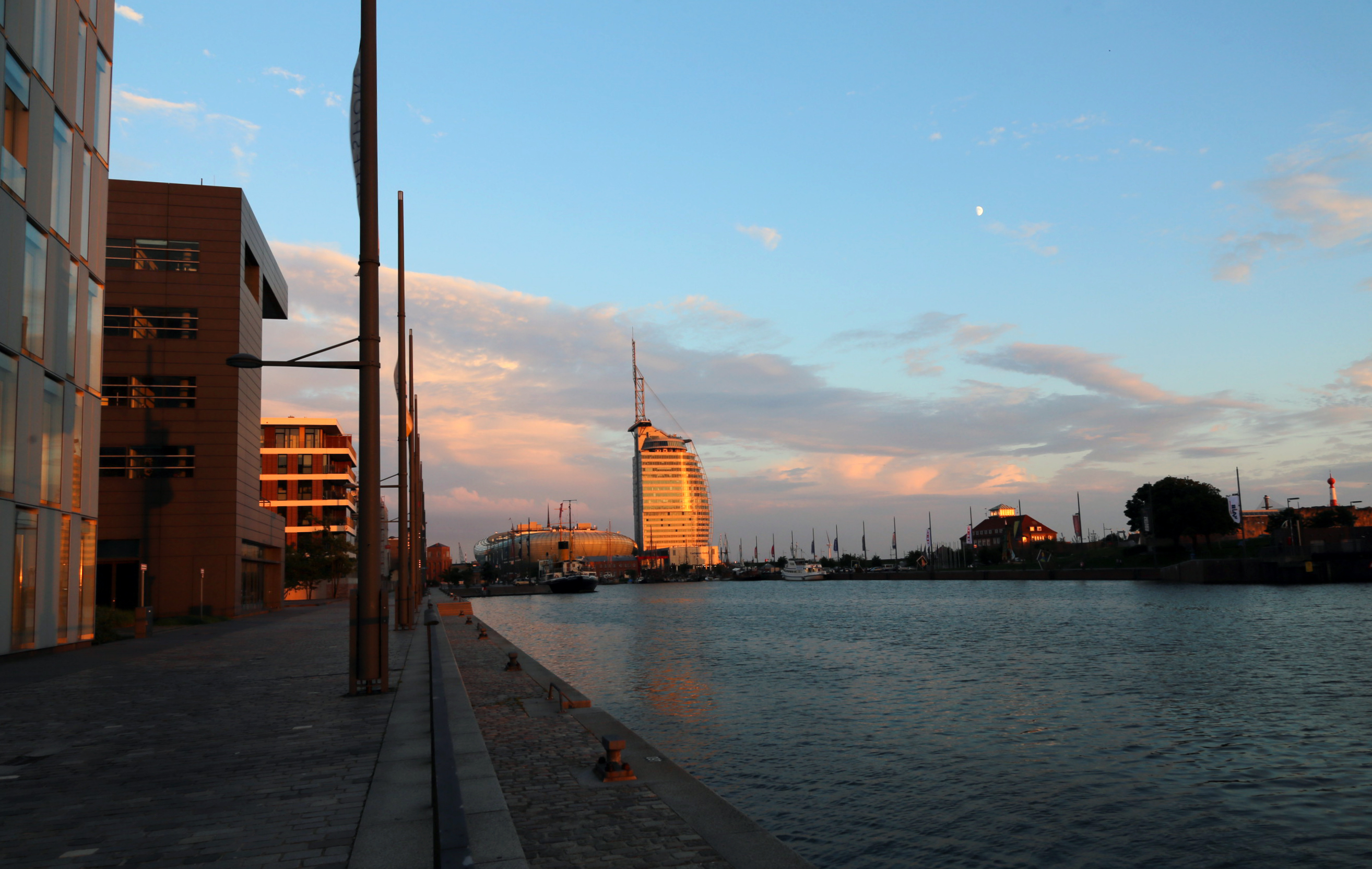 Walking in and around the harbor area – and on the dike is an experience, if you like the sea (water) and architecture. It is also nice with a view from the top, from the viewing platform at SAIL City (on the top of the Atlantis Hotel).