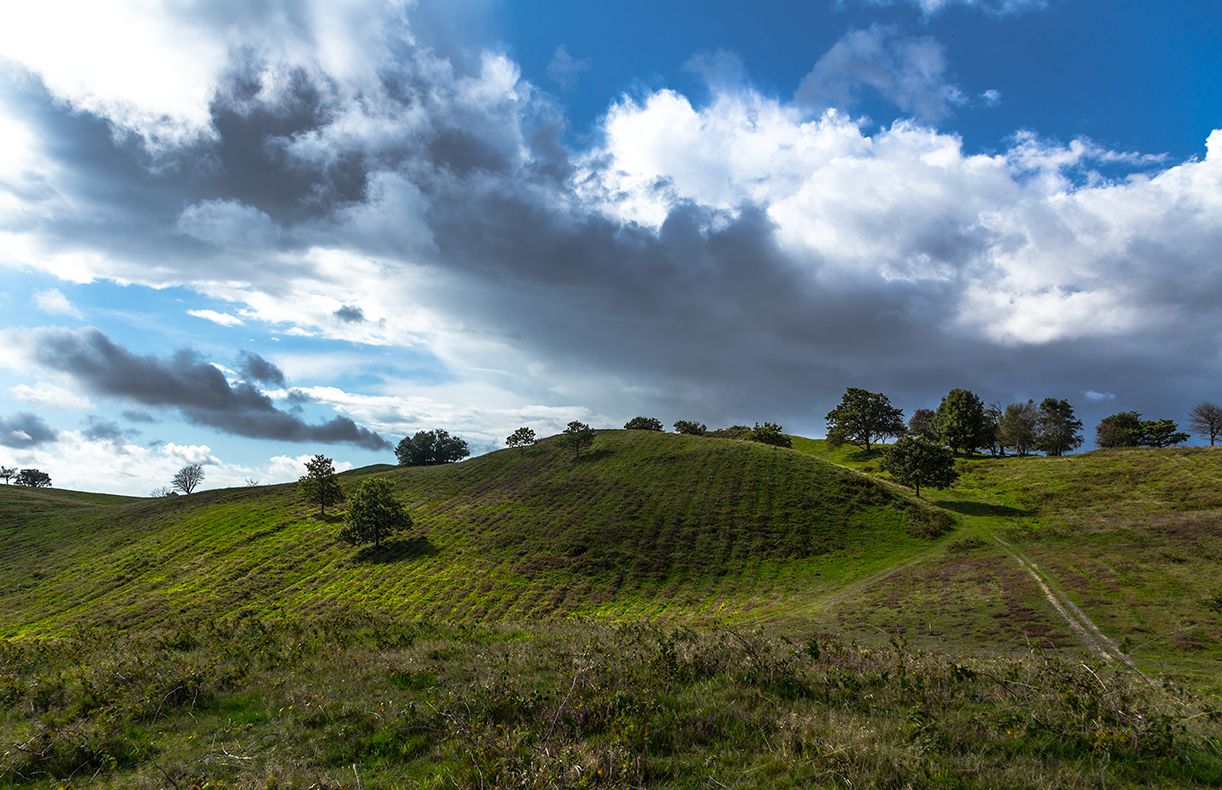 We went by car, a 15-minute drive, parked and walked a short distance to the highest hill in the park – and one of the highest places in Denmark (!), Agri Bavnehoej, 137 m asl. From here we followed a hiking trail (short 1 hour walk).