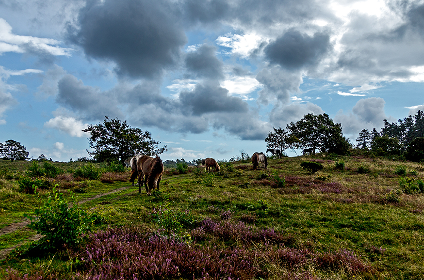 Just after we had met the horses, the weather changed again and went from blue to grey and it started raining heavily (the water drops in the cobwebs were fantastic, unfortunately my photos were not), so we ran for the car.
