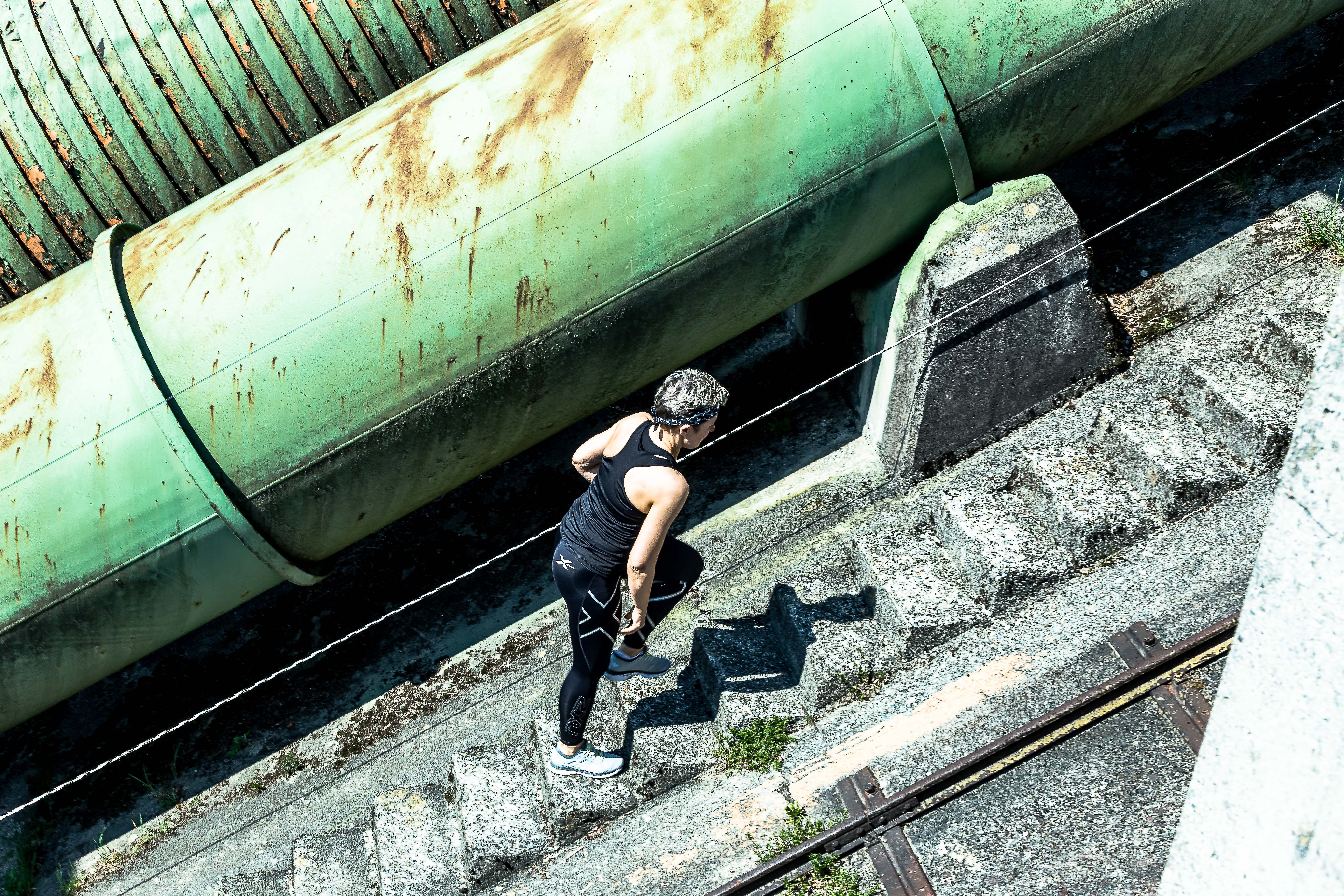 Now I was pretty shaken. I had expected to hide in the group among 80 other women. Now I was to start as the first woman. If I was too slow, it would mean that, in addition to having to battle with the stairs, I had to step left out of the narrow staircase – on a sloping concrete surface with only a thin steel wire to hold onto – to let others faster runners pass to the right. Worrying.
