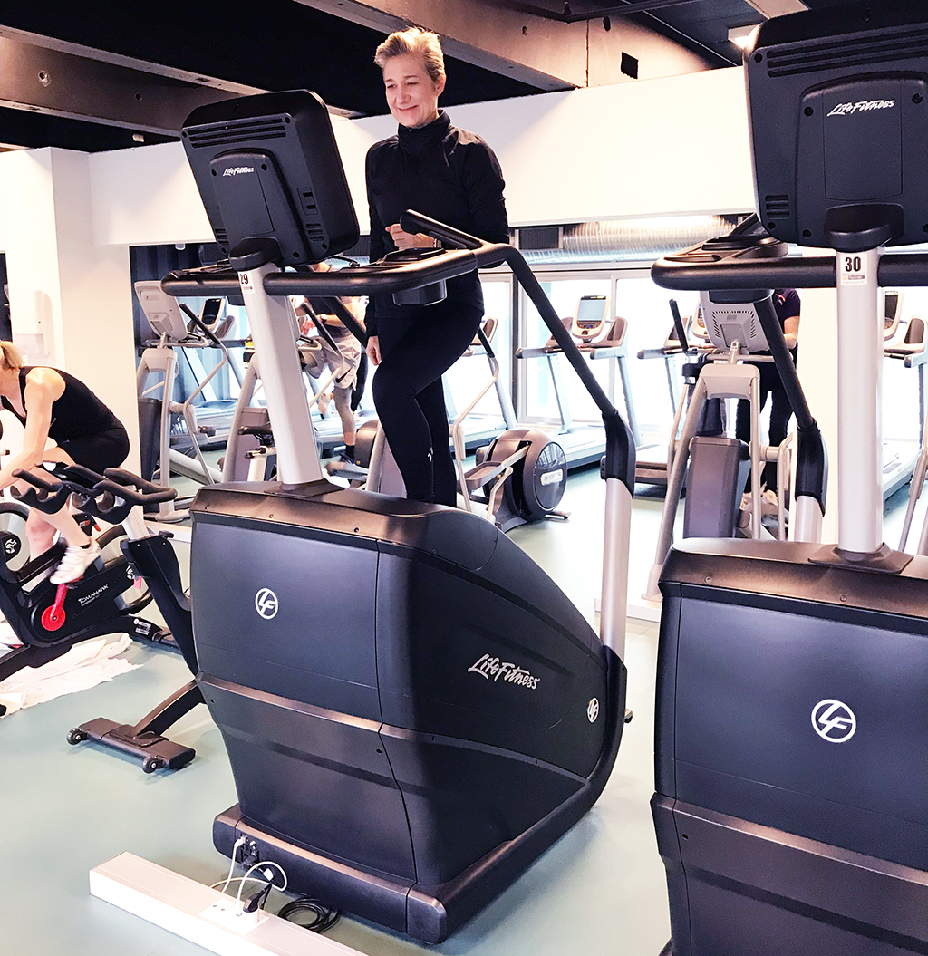 Nevertheless we continued with 1-2 weekly stair workouts. Now I replaced stair walking with stair machine training in the fitness gym (a Power Mill). Far from moving the body upwards as on real stairs, but with the advantage that the steps continue endlessly and without landings (pauses).