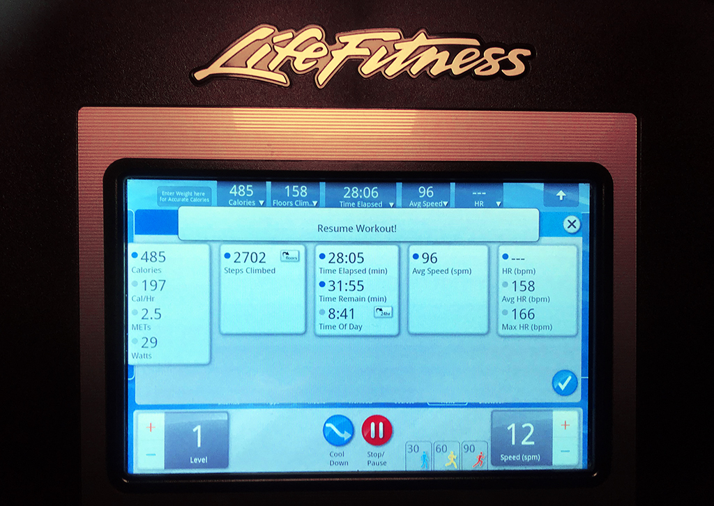 Surprising! Not a super time, but a few minutes better than my recent times at the stair machine back home (and it’s not nearly as hard as the real thing).