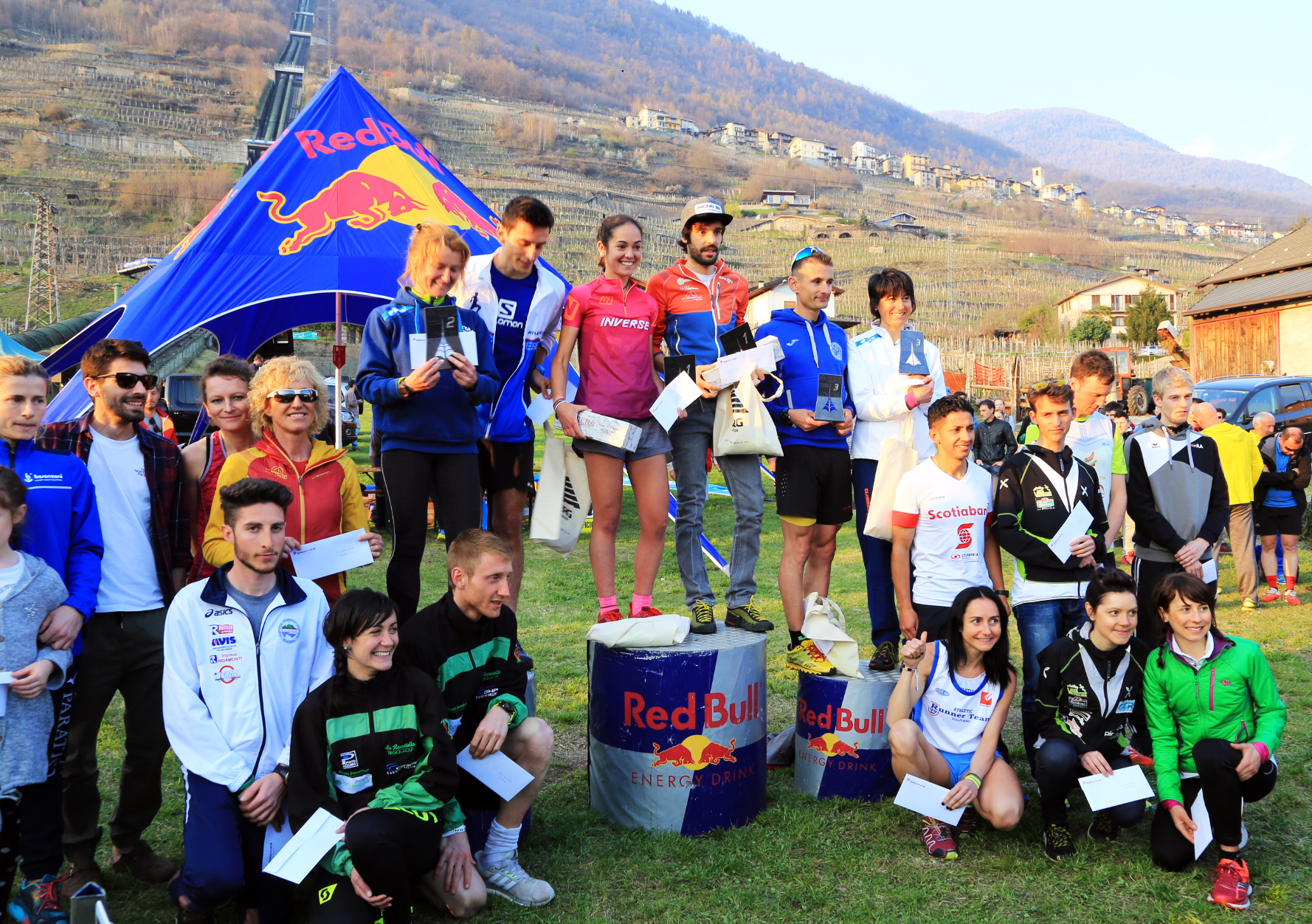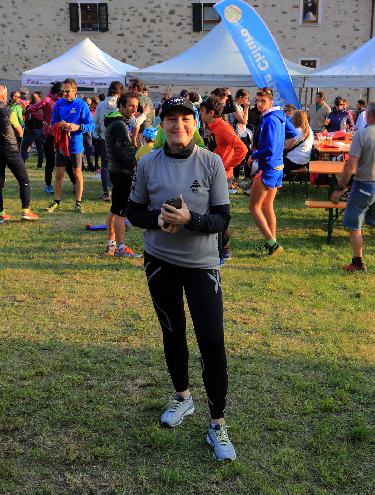 The starting area is a sloping lawn with tables and benches, some sponsor tents, a couple of stalls with food, snacks and wine! Sondrio is a well-known wine region with amazing wines.